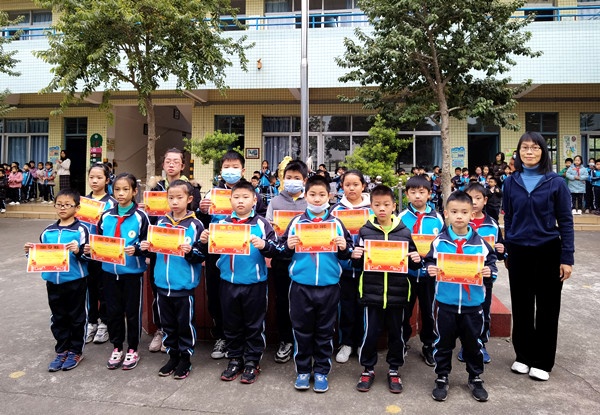 比赛结束后,数学科组的老师们开始紧锣密鼓地批阅试卷。经过紧张、激烈的角逐,一批“计算小能手”脱颖而出。1月4日清晨,学校利用升旗仪式的时间对刘伟钦、梁恩赐、廖冰清等14位获奖同学进行颁奖。瞧,同学们拿着奖状露出了喜悦的笑容。