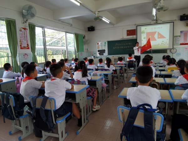 10月11日上午,全校利用队会课时间开展了主题中队会和“我向党旗、团旗、队旗敬个礼”中队活动。其中一二年级的中队会主题是《队前教育》和《我向党旗、团旗、队旗敬个礼》,三-六年级的中队会主题是《少先队礼仪知识培训》和《我向党旗、团旗、队旗敬个礼》。队会上,辅导员们引导少先队员认识队旗、队徽,学习佩戴红领巾,练习敬队礼、呼号,熟悉队歌、誓词等。