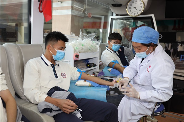 活动现场,工作人员严格按照疫情防控要求进行各项操作,为献血学生提供各项指引,热忱服务每一位参与无偿献血的学生。同时,献血的学生们戴好口罩早早的来到指定献血点,排起长队,等待工作人员进行体检、填表、量血压和血液化验,大家都自觉遵从工作人员的安排,有序完成检测,进行献血。