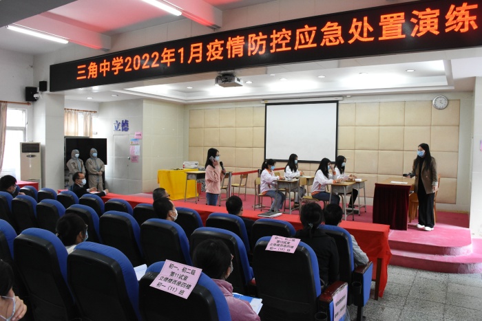 为扎实做好校园疫情防控工作,确保期末考试各项工作的顺利开展,1月7日下午,三角中学举行2022年疫情防控应急处置演练。学校行政领导、学校总务处、医务处相关人员及全体教师代表参加了演练,三角医院刘森副院长莅临现场作专业指导。