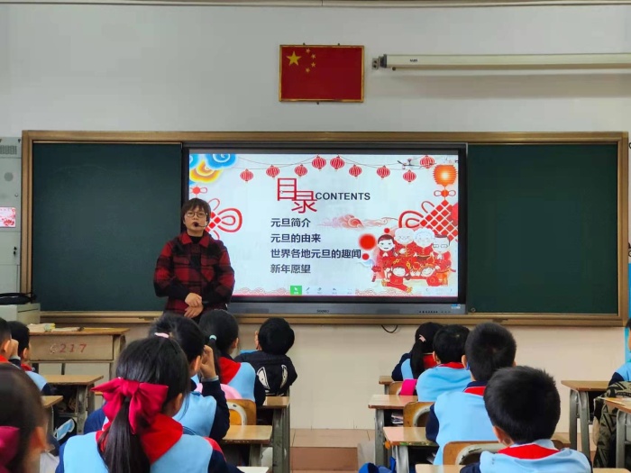本次活动在各班班主任对学生衷心的新年祝福中开始,班主任寄语学生们在新的一年里身体健康,学习进步。简单的语言,却承载着老师最真心的祝福,同学们也纷纷用热烈的掌声表达对老师的感谢。紧接着,老师给学生讲解了元旦相关的知识,如元旦的由来、世界各地的元旦习俗等等。