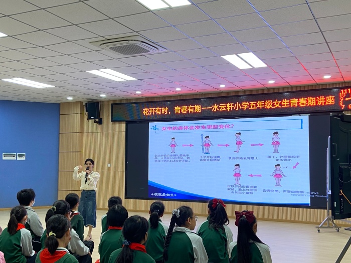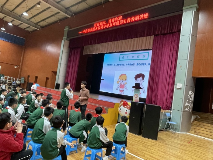 娉娉袅袅十三余,豆蔻梢头二月初。青春期是青少年身心快速发展的重要阶段,是学生成长的关键期。为引导学生正确对待青春期身体和心理的变化,减少青春期所引起的种种困惑对学生的学习、生活造成不良影响,帮助他们更健康、更快乐地度过青春期,2023年3月27日上午,中山市东区水云轩小学分别为五年级的男生和女生带来一场有趣又有用的青春期健康知识讲座。