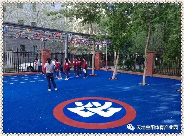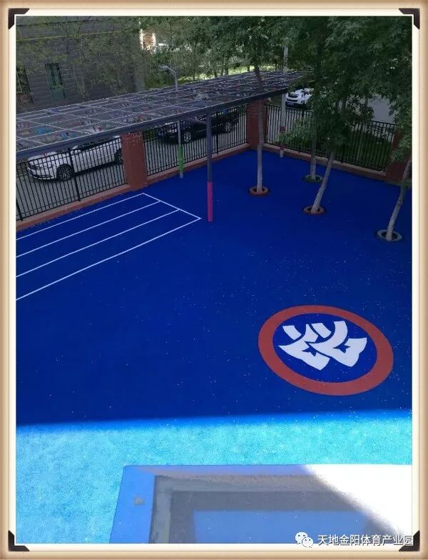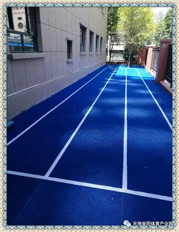 此次设计的跑道具有好的弹性,可以避免孩子们在玩耍嬉戏时跌倒撞伤而带来的二次伤害。本次使用的主材是以水为固化剂,绿色、生态、健康、环保,让孩子们365天360度健康深呼吸。无与伦比的蓝色,即增加了跑道的魅力,也带给孩子们更多视觉的享受,给孩子们一个快乐、风趣的童年。