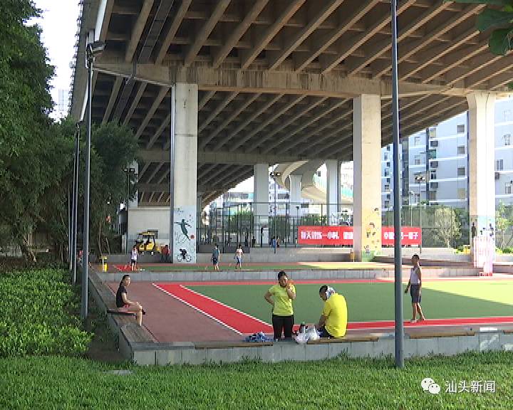 西堤公园除了有体现汕头“开埠”“过番”“侨批”等历史元素,还配置了篮球场、足球场、门球场等免费开放的体育设施,其中一些场地正好位于礐石桥下,宽阔的箱梁在运动场上方撑起巨大的遮阳伞,延长了市民白天运动的时间。