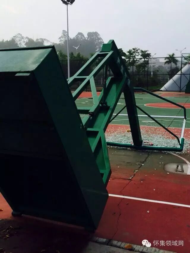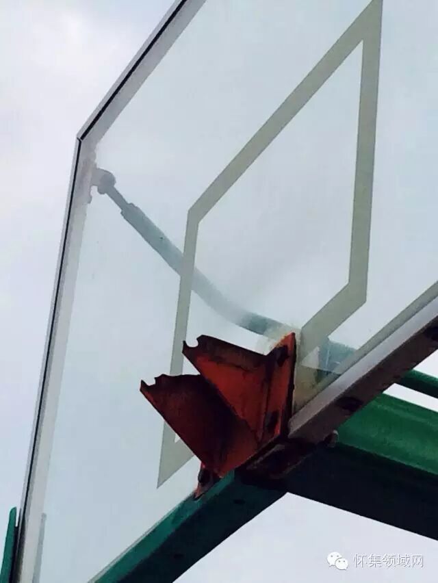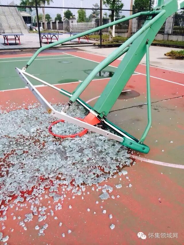 篮球架严重被破坏,玻璃碎了一地,群众的心也碎了一地