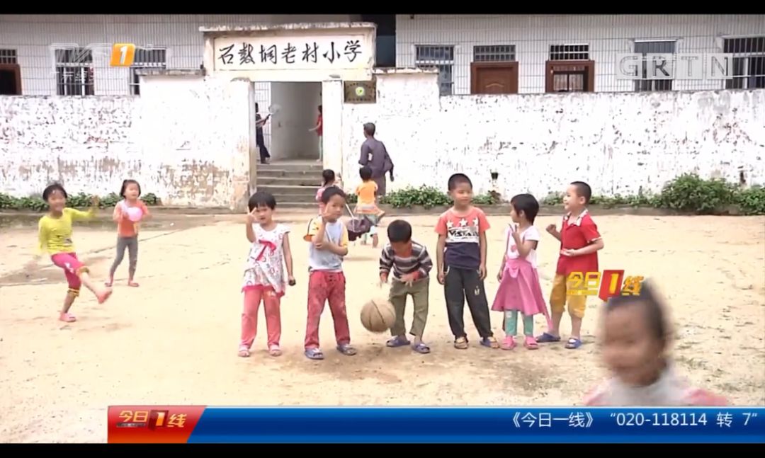石鼓垌村委老村小学是一所民办小学,校园的硬件设施都比较差,学生当跳绳使用的都是废弃的包装绳,而仅有的体育器材都是爱心团体捐赠的;原本校园内还有一些体育设施,但去年就被村里的冯氏族人强拆了。