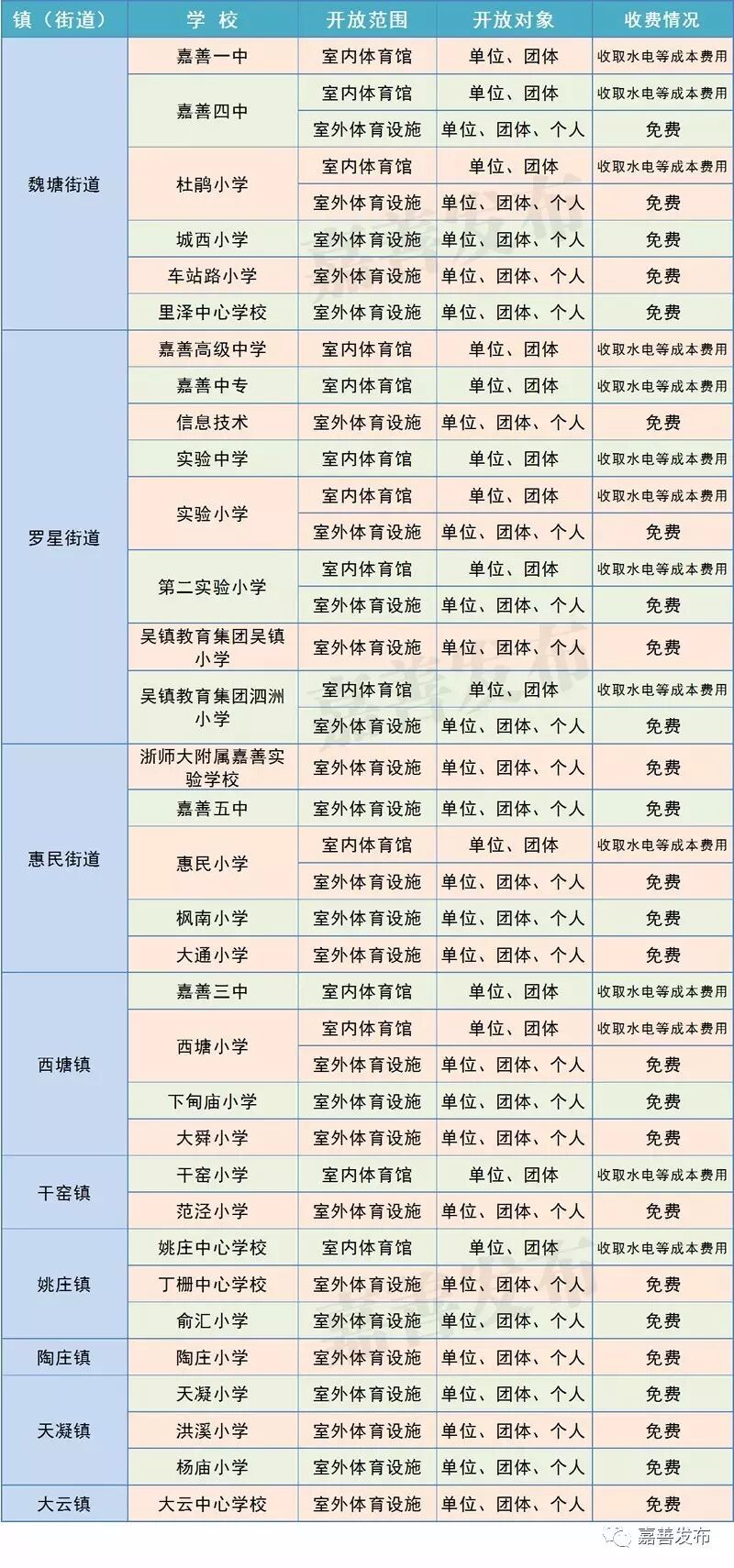 你看,有这么多学校开放了,外加其他公共体育设施,在嘉善锻炼的地方还是挺多的,为此我们发出一个倡议。