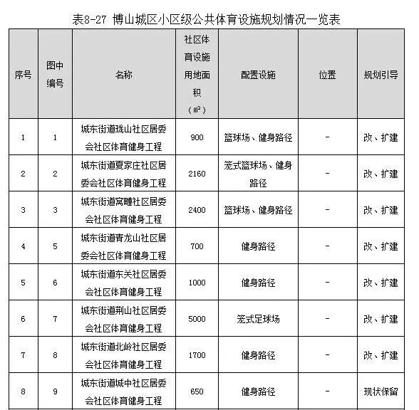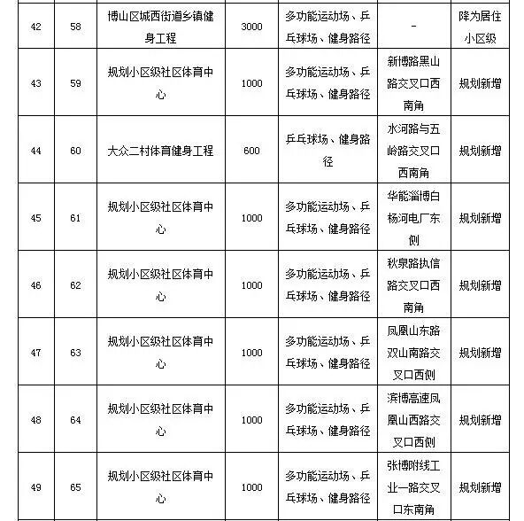 博山城区规划公共体育设施69处,公共体育设施用地面积46.79hm2,其中: