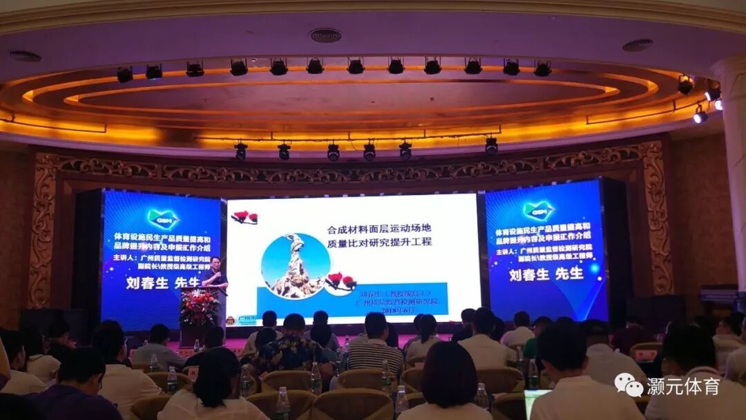 随后,广州市质检院副院长教授级高工刘春生就“体育设施民生产品质量提高和品牌提升”内容及申报工作进行介绍。他表示:体育设施民生产品要紧密围绕党中央国务院关于“坚持质量第一”“增强质量优势”“建设质量强国”等重要部署,积极贯彻落实质量提升和品牌提升的相关工作。