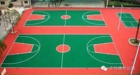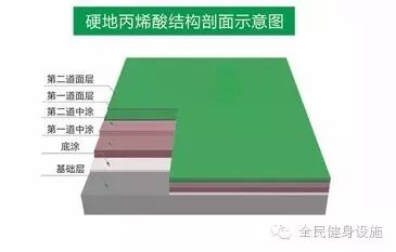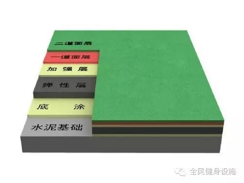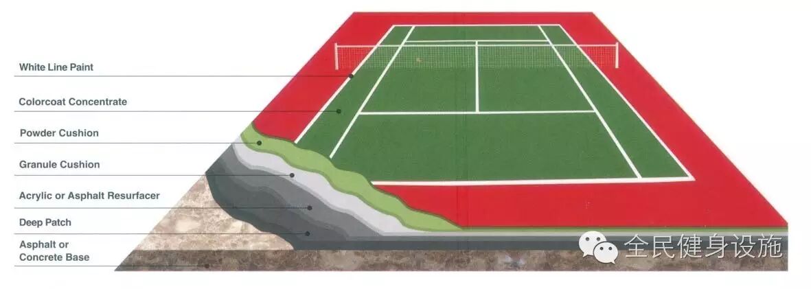 弹性丙烯酸球场面层厚度3-5mm,可适用于沥青基层或高质量的混凝土基层。