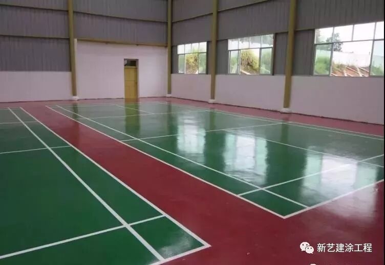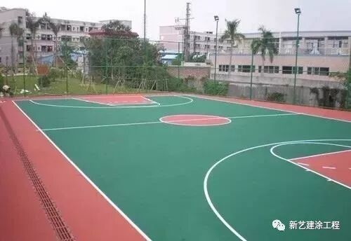 将丙烯酸色漆加入固化剂后用滚筒均匀的涂刷2遍,要保证漆面的颜色均匀一致。如果是球场,需要进行划线处理,则在间隔2个小时后,进行划线。