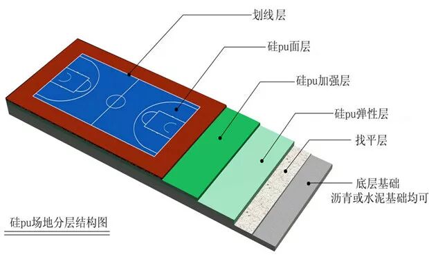 1、硅PU球场材料可以直接在水泥混凝土上铺设
