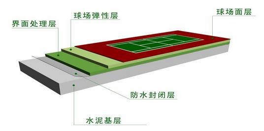 ■ 地基要求:弹性丙稀酸球场对基础要求较高,造价高,脚感软硬适度,球反弹速度正常,摔倒时不易受伤。
