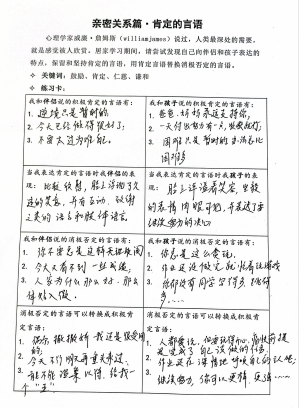 学校家庭教育团队结合课程编写《容山中学父母成长手册》,进行课程效果前后测分析和评价,将课程辐射到社区等形式创新工作坊和拓宽家庭教育领域。