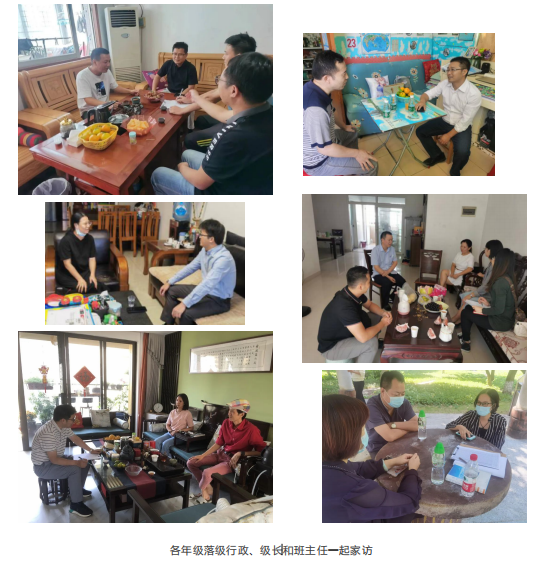 在学校统一部署下,各年级班主任制定了家访计划,并按计划做好了充分的前期准 备,制定家访提纲,包括整理学生在校表现、学生家庭情况、成长环境、思想动态、学习表现和生活习惯等。每学期三次以上集体家访活动,由学校领导、落级行政、级组长和班主任进行到家普访,每学期班主任不定期进行家访,每学年完成50%以上,超额完成上级要求,重质重量,更重温情。