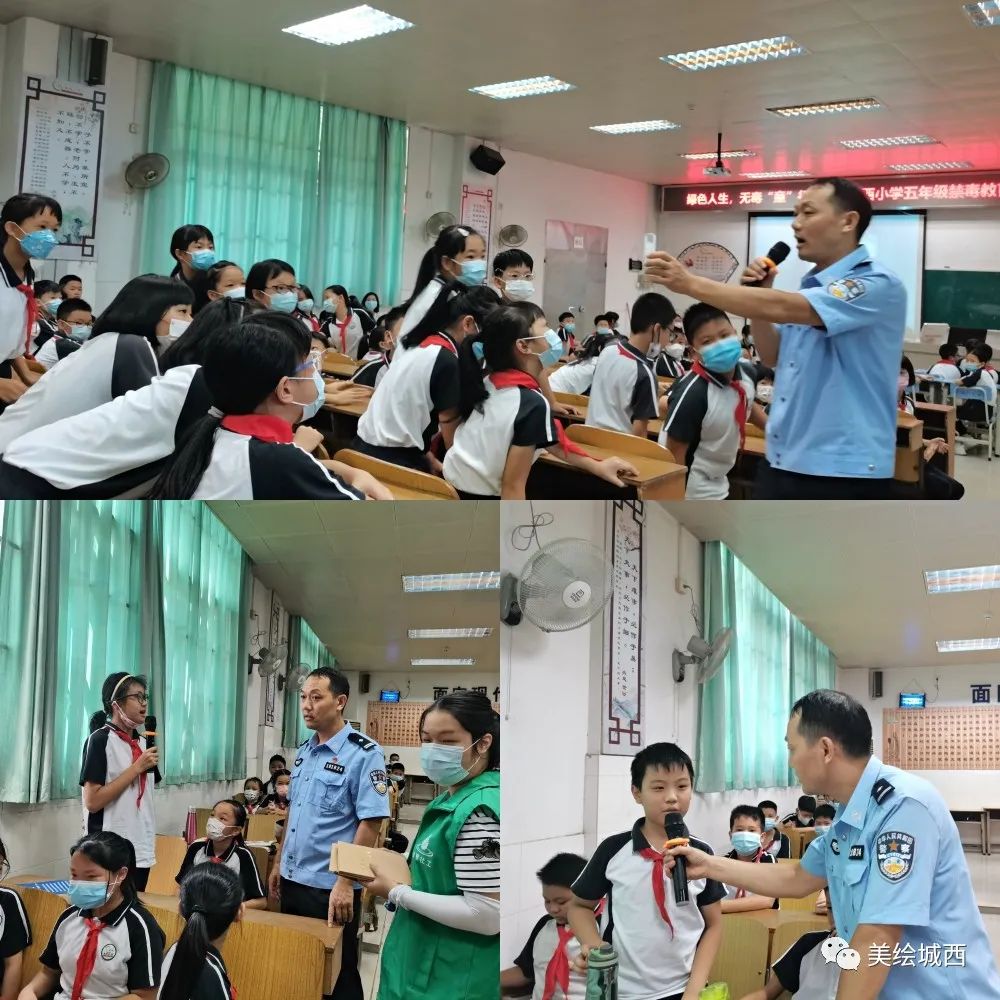 为切实做好秋季开学校园毒品预防宣传教育工作,容桂街道禁毒办公室、容桂派出所积极助力开展秋季入学“禁毒第一课”主题活动增强学生识毒、防毒、拒毒能力。2022年9月6日下午,容桂街道禁毒办、容桂派出所,联合顺德禁毒协会容桂分会、容桂启明星驿站,携手走进容桂城西小学校园开展禁毒宣传教育活动,将禁毒预防教育作为“开学第一课”。
