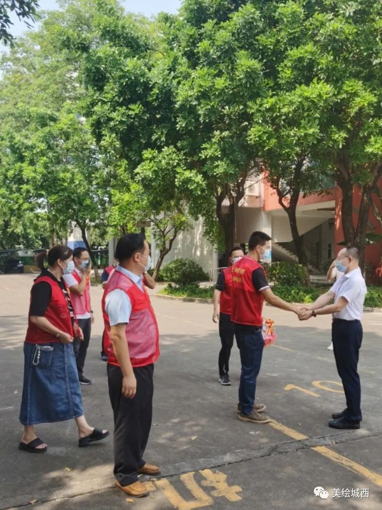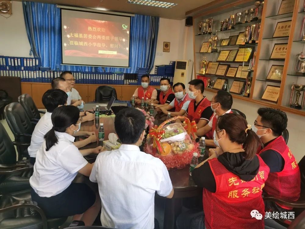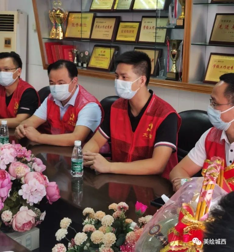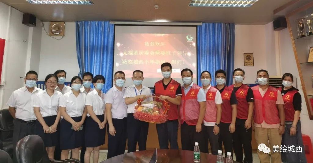 桃李满天下,春晖遍四方。为发扬尊师重教的优良传统,在第38个教师节来临之际,街道驻大福基直联团队组长陈文平、成员罗永茂、梁韶伟,大福基社区党委书记林剑斌、副书记刘志华、党委委员周淑芳、曾联庆等一行人来到城西小学开展教师节慰问活动,向学校教职员工致以节日的问候。我校艾和平校长带领全体行政迎接社区领导的到访。
