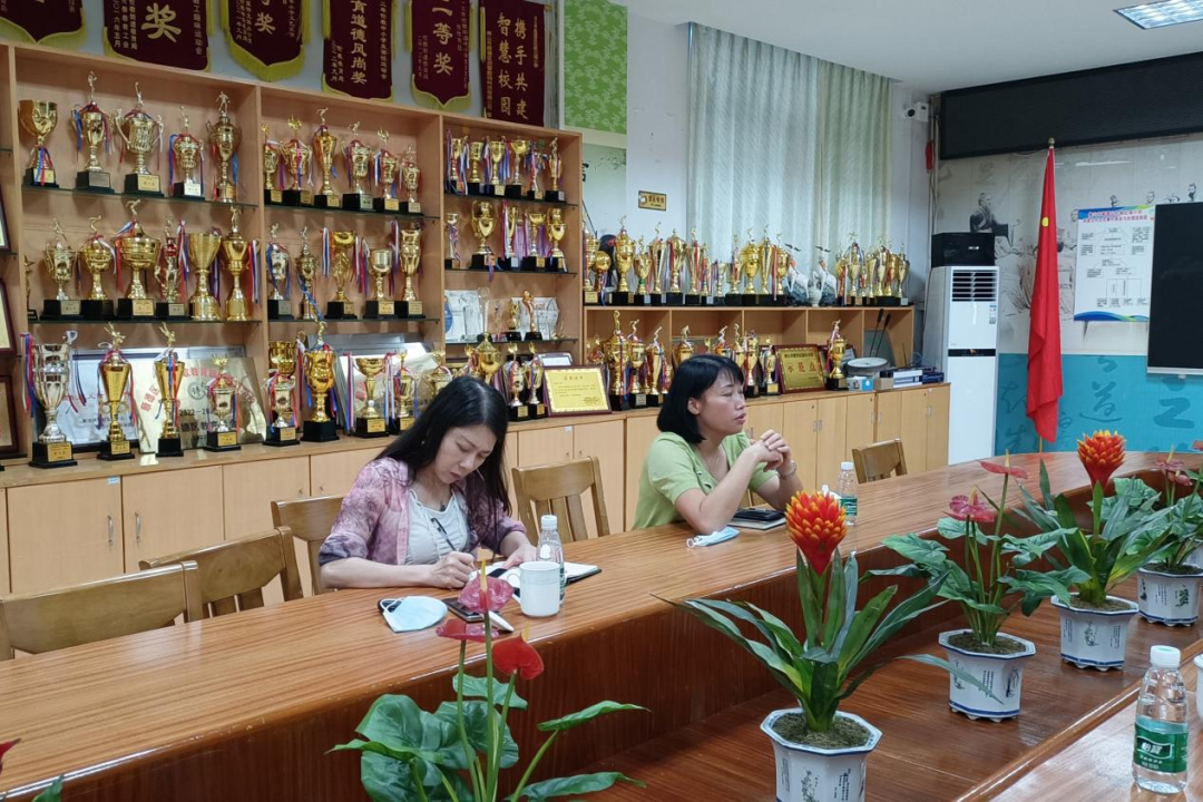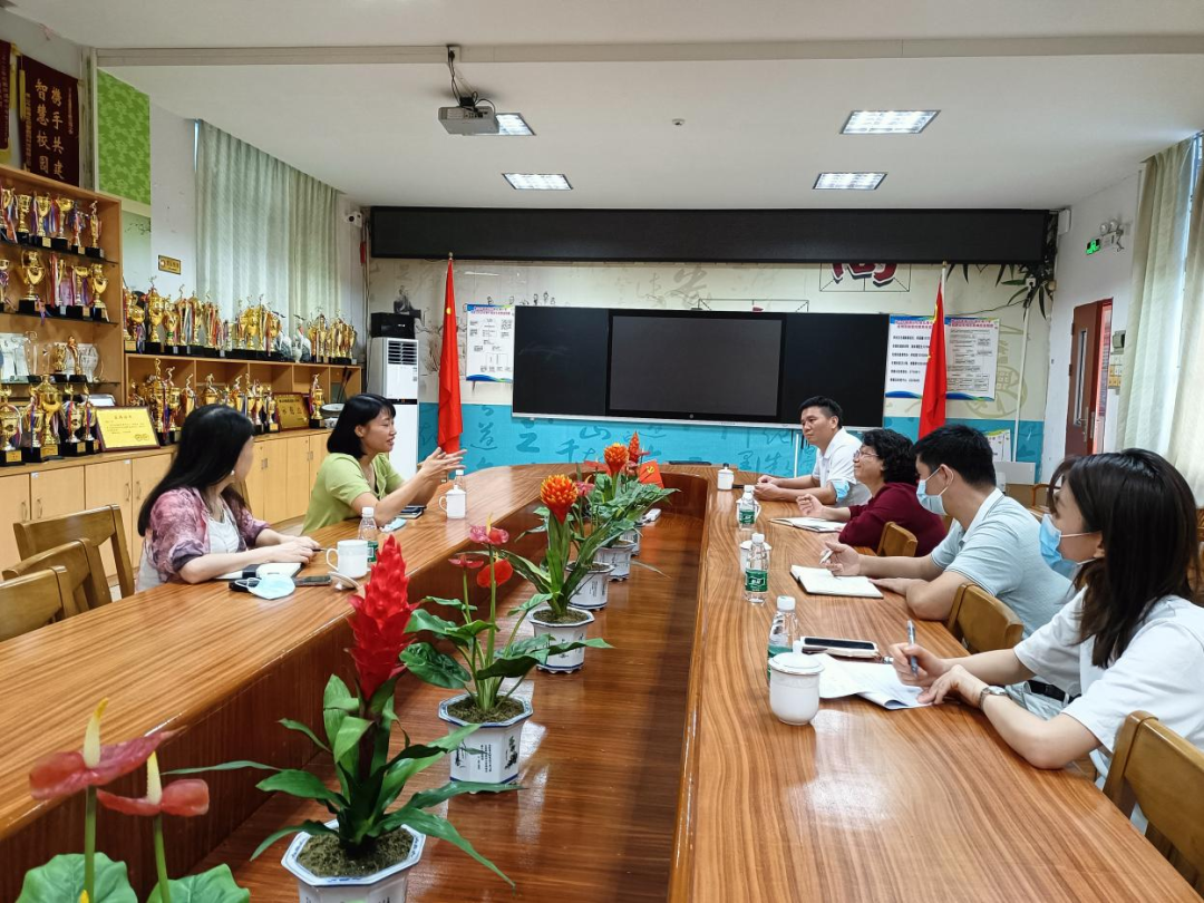 最后,大家移步会议室进行座谈。郭丽华校长从北海小学近几年校园校貌的改变;“全童教育”品牌特色建设;劳动教育、粤剧、民族管弦乐、游泳、书香校园、魅力课堂等特色项目的传承与打造;打造精品校本课程等方面作详细汇报,并提出学校教育教学工作方面的困惑以及需求。
