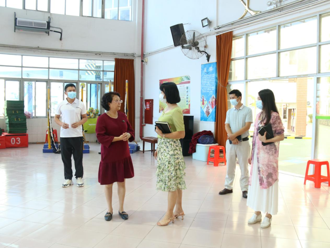 随后,梁副书记在学校行政领导班子的陪同下,参观了学校大礼堂、运动场、教学楼以及各功能场室,实地了解学校办学环境、教学设施设备以及校园文化等情况,并现场反馈了调研中发现的问题并提出了改进建议。