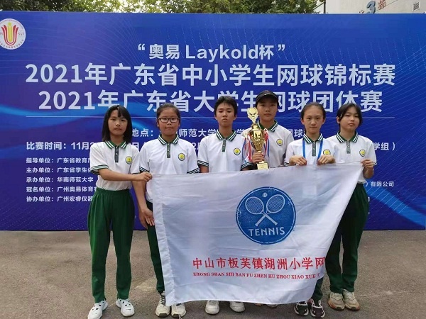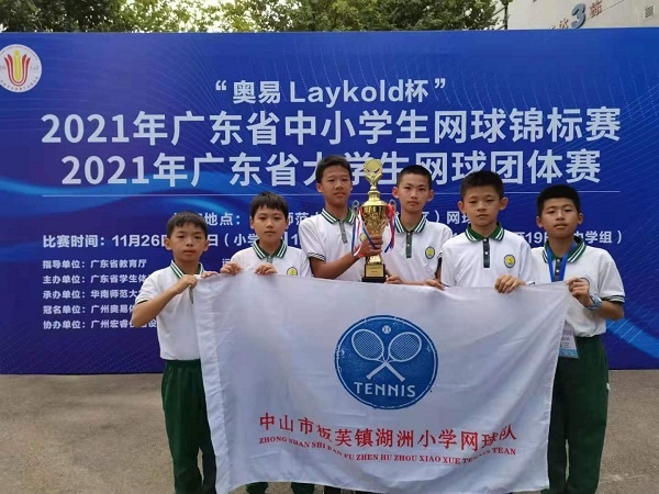 2021年广东省中小学网球锦标赛小学组的比赛于11月28日在华南师范大学落下了帷幕,本次比赛吸引了全省29所小学参加,参赛人数高达230人。板芙镇湖洲小学网球队派出12名运动健将参加比赛,获得小学甲A组团体总分第四名的好成绩。