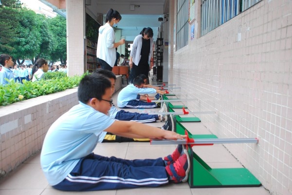荣誉室前,肺活量测试正在进行。“放松,深呼吸,吐气!”在裁判老师的鼓励下,同学们都在肺活量测试中取得了令自己满意的成绩!