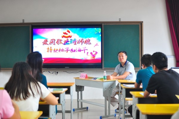接着,刘书记给全体教师授课,授课主题《爱国敬业筑师魂》。刘书记在讲课当中,围绕着“习近平谈弘扬爱国主义伟大精神”、“习近平谈教育”、“师风师德相关论述”、“大涌镇情概述”四方面展开,以知国恩、爱国情、强国志、报国行为主线,从习近平总书记谈爱国讲起,引导大家把爱国和教育统一起来,在教育教学实践中发掘自身价值,树立忠诚于人民教育事业的理想,树立终身从教的献身精神,为打造人民满意的教育贡献力量。