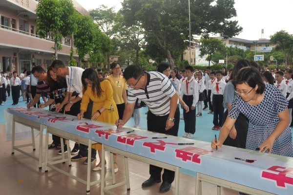 今年是中山创建全国文明城市的关键年。为助力中山全国文明城市的创建工作,切实提升全校师生的文明素质,根据中山市教育和体育局《关于在全市中小学幼儿园开展“六个一”创文实践活动的通知》精神,2020年7月10日上午东凤镇永益小学举行“同做文明人,共创文明城”创文启动仪式暨全体师生签名活动。