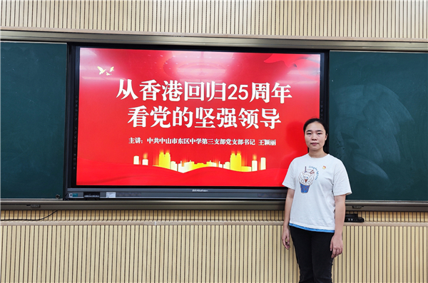 为庆祝中国共产党成立101周年与香港回归祖国25周年,7月5日,中山市东区中学第三党支部组织开展了支部书记讲党课、全体党员重温入党誓词专题活动。
