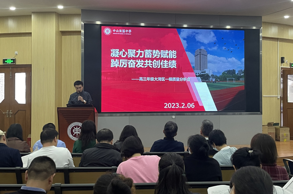 2023年2月6日下午,中山市东区中学召开了高三年级大湾区一模质量分析会。会议由高三年级林之主任主持,谢柏芳校长、周雨寰副校长、余平辉副校长、林丽娜副校长等行政领导和全体高三老师参会。