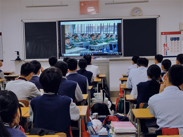 在学校德育处和年级的指导下,全体高二班主任特别策划制作了包含预防溺水、防学生欺凌、网络安全、交通安全和消防安全等多维度的主题班会课。有的班主任播放“预防溺水珍爱生命”的视频,有的班主任组织你问我答安全知识问答活动,有的班主任结合日常所见,说明学习生活中存在的安全隐患风险……师生同学同分享,共同筑起学生成长的安全防线。
