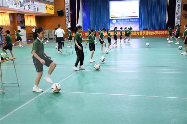 为发挥能力提升工程2.0试点区和试点校示范引领作用,探索智慧教育环境下体育学科的教学模式,促进信息技术与教育教学融合创新发展,2022年9月28日上午,东区雍景园小学承办了主题为“智慧领航·创新课堂”的中山市能力提升工程2.0体育学科典型课例的展示交流活动,并进行了现场直播。广东省教育研究院体育教研员肖建忠博士、中山市能力提升工程2.0办公室吴寒冬主任、中山市教育教学研究室教研员陈明宏老师、中山市教育教学研究室兼职体育教研员李涛老师、中山市教育技术中心陈志豪老师、东区街道教育和体育事务中心体育教研员梁国来老师、东区雍景园小学欧淑霞校长、东区各学校体育老师以及线上的老师参加了本次活动。