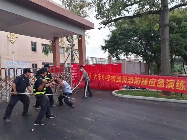 为进一步加强学校安全保卫工作,检验处置突发事件指挥应变能力和各部门协调配合的能力,提高全校师生紧急避险的能力,9月17日下午,大丰小学开展了本学期第一次校园防暴反恐培训及应急模拟演练。