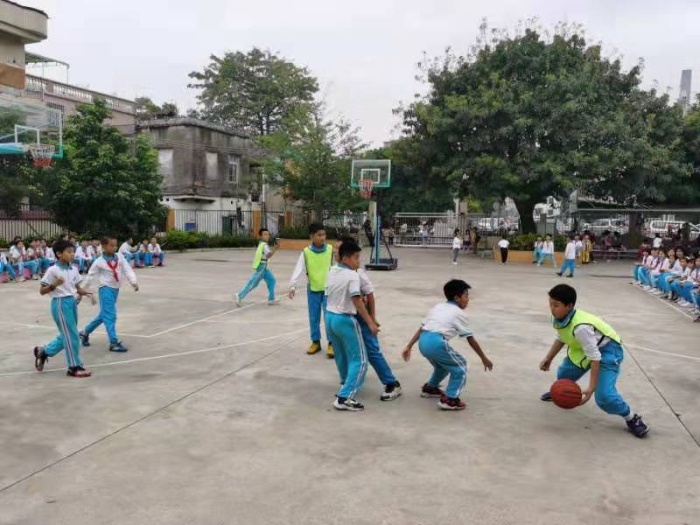 在比赛过程中,高年级组的参赛选手们上下一心,顽强拼搏,妙传、盖帽、跳投、防守以及远距离投篮等等,充分展现出了自身在篮球课中的所学所悟,可以说是群众小学的“全明星篮球赛”!中年级组表现出了很好的团队精神,明白篮球“靠团不靠单”的运动精神。场上选手挥洒汗水,场外啦啦队欢呼声、呐喊声不断,现场气氛燃爆了!低年级组的篮球技巧比赛在既紧张又欢乐的比赛气氛下进行。球场的上空荡漾着参赛选手稚嫩的笑声与欢呼声。