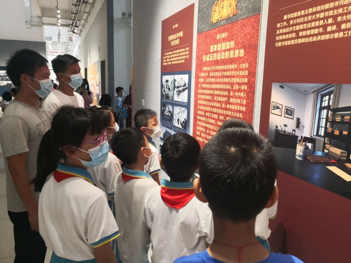 7月6日,港口镇群众小学组织部分师生、家长到港口镇文化中心参观港口镇“光辉伟业,红色序章—北大红楼与中国共产党早期北京革命活动主题”展览活动。