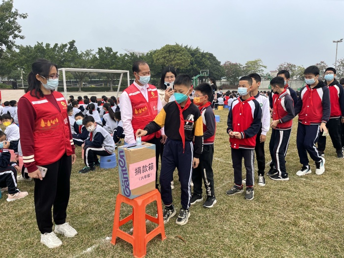 大爱无边,慈善同行。典礼的最后环节是慈善万人行活动,在《我们与爱同行》的背景音乐中,每个年级的同学有序地排好队伍,纷纷献上自己的一份爱心。