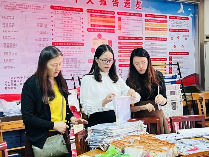 首先,专家们认真审阅了课题组提交的中期报告和过程性资料。随后,课题主持人蒋丽媛老师分别从“课题提出的背景和实践意义”“课题概念界定”“课题研究的目标与内容”“课题研究的方法与过程”“课题中期研究成果”“课题完成情况及后期任务”六大方面进行课题中期汇报。
