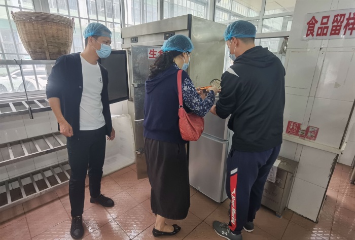 随后,督导组一行在吴卓芬副主任等人的陪同下,对学校食堂、保健室等重点场所进行了实地查看。督导组一行充分肯定了学校防疫各项工作,认为学校管理人员意识较高,资料也比较齐全。同时,督导组也提出了宝贵的意见:继续常态化落实防疫要求,进一步梳理各项台账,结合最新的文件精神更新学校应急处置预案。