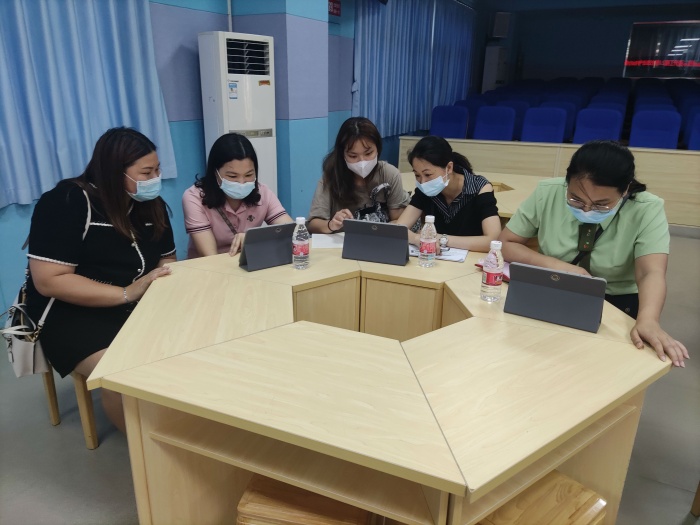 2022年5月5日上午,由横栏镇教育和体育事务中心组织,由全镇中小学、幼儿园信息技术能力提升工程2.0骨干教师组成的检查验收组对横栏镇三沙小学教师信息技术应用能力提升2.0工程整校推进工作进行了验收。学校黄燕芬副校长、梁坤志主任全程陪同检查。
