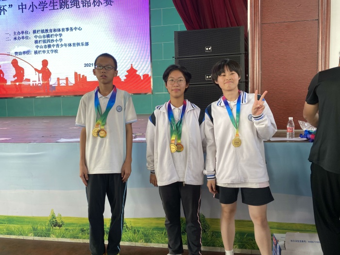12月17日,在四沙小学举办的2021年横栏镇中小学生“华文杯”跳绳锦标赛中,横栏中学跳绳队经过激烈角逐,荣获横栏镇第一届中小学生跳绳锦标赛初中组冠军!