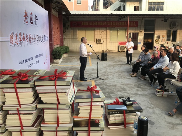 活动在黄圃镇石军村村委书记郭宋华同志介绍参加这次活动的领导嘉宾中拉开了序幕。活动的第一个环节是赠送革命书籍:由市老干局领导,老战士陈若同志、黄凤兰同志,原中山县委书记梁奇达儿子梁凯明、黄圃籍珠纵老战士郭大同女儿郭虹分别向石军村、石军小学、黄圃镇各农家书屋赠书。石军村党委书记郭宋华同志、石军小学梁蔚菁校长及各农家书屋负责人分别接受所赠书籍。随后进入活动的第二个环节:由郭昉凌同志分享红色革命故事。郭昉凌同志声情并茂地讲述了珠江纵队的革命先辈在抗日战争时期不畏艰险、敢于牺牲、英勇战斗的故事,特别是驻守在石军沙的罗若愚等同志,在艰苦的抗战中不怕牺牲,坚持与敌作战。在座全体人员认真聆听,纷纷感慨没有革命老前辈的英勇付出,就没有今天在座人员的美好幸福生活。最后,活动在黄圃镇党委委员李华军同志的总结中结束。