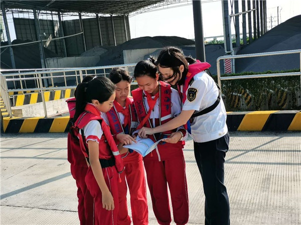 来到洪奇沥水道,何志航处长向同学们介绍海巡船的设备设施,同学们亲眼看到、亲身体验到海巡船的设备设施,更学到了来源于实际生活而在课本上从没学过的知识,使同学们充满了深深的好奇,都想深入探究,一试为快。紧接着,船上一行登上黄圃港码头,何处长为全体人员介绍了黄圃港的建设新貌,