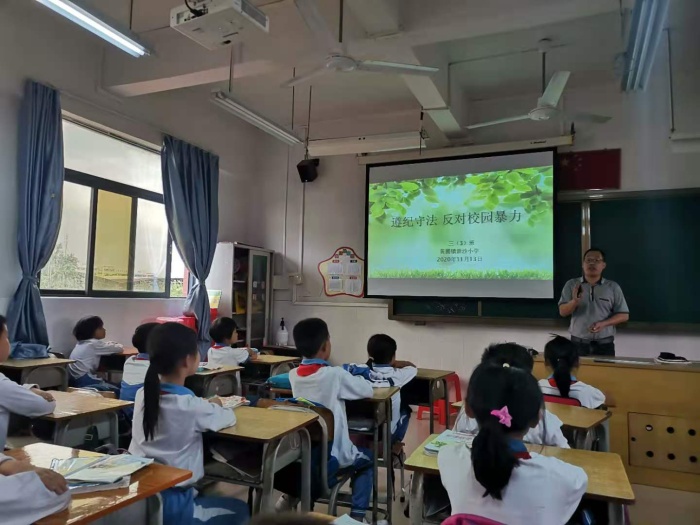 校园暴力不仅伤害未成年人身心健康,也冲击整个社会的和谐稳定。为加强对校园暴力事件的预防和处理,引导学生树立正确的人生观和价值观,把“恶”的思想消除在萌芽状态,从根源上杜绝违纪违法、校园暴力现象的发生,11月14日下午,黄圃镇新沙小学开展了“遵纪守法,反对校园暴力”主题班会。