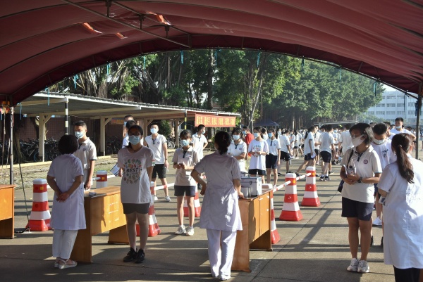 今年体育中考与往年最大的不同是,疫情防控工作贯穿始终。上午7点30分,黄圃镇中学初三学生在学校广场集合,分批进入考点,在进入考点前先测量体温,随后进入检录区,考生携带身份证、准考证,经检验后进入考场。考场内医护组、供电组严阵以待,预防各种突发状况;考场外保卫组严格控制人员进出,全力保证考场安全。考生们则在良好的环境中顺利进行考试,篮球半场上篮、足球运球绕杆、跳绳、立定跳远、长跑,每个项目都在有序进行,不时传来考生们激动的欢呼声。