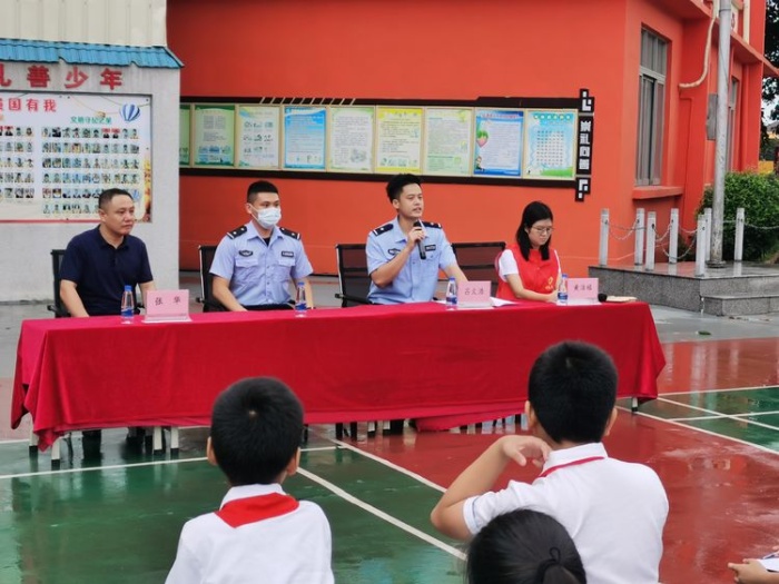 时光如水,岁月如歌,紧张而又刺激的一学期工作又到了尾声,孩子们再次迎来了翘首以盼的暑假。为了使每一个孩子能够过上一个平安、快乐的假期,雏鹰学校于7月4上午,邀请了黄圃镇永安派出所的吕文浩警官、林健浩警官,以及黄圃禁毒办的黄洁祯老师开展了期末法制安全讲座,力求全方面做好假期前的安全教育工作,为孩子们假期间的安全增添一份可靠的保障。
