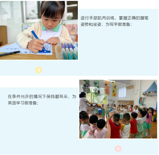 为让家长更好地开展幼小衔接家庭教育工作,我园整理了身心准备、生活准备、社会准备、学习准备四方面的家庭版本指南供家长参考。