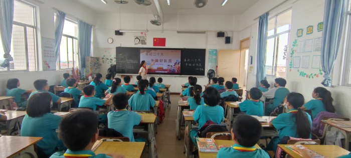 历史是一面镜子,它照亮现实,也照亮未来。学习党的历史,了解党的过去才能看清前进的方向。回首百年党史,百年栉风沐雨,百年砥砺前行,百年岁月峥嵘,中国共产党带领中国人民走过了光辉的历史征程。教室里,队员们从认识旗帜开始了有关中国共产党党史的学习。