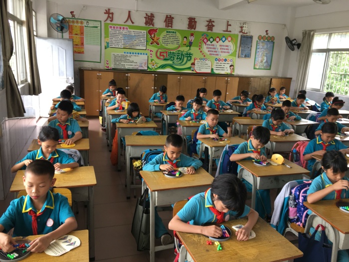 活动过程中各班学生在任课老师的精心组织下,首先用十分钟观看需要动手操作活动的相关视频,一二年级活动内容是七巧板,三四年级活动内容是智慧金字塔,五六年级活动内容是魔方。看完视频后,学生开始动手研究起手中的“玩具”:一二年级拼出各种各样有趣的小动物或者活动的“人物”;中年级不断挑战金字塔的堆砌级别,高年级则翻动着手中的魔方。学生在课堂中动手动脑,享受想象、实践、创新的硕果,真实感受科技的魅力。课后,学生的热情依然不减,他们继续在学习之余,课间休息时间探索、提高。