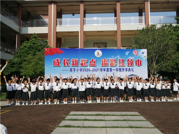 金秋时节,山河壮美。在金风送爽的季节,翠亨小学全体师生满怀希望迎来了新学期。9月1日上午,在庄严的国歌声中、在鲜艳的五星红旗映照下,举行了隆重而庄严的以《成长新起点,添彩红领巾》为主题的开学典礼,共同翻开新学期崭新的一页。