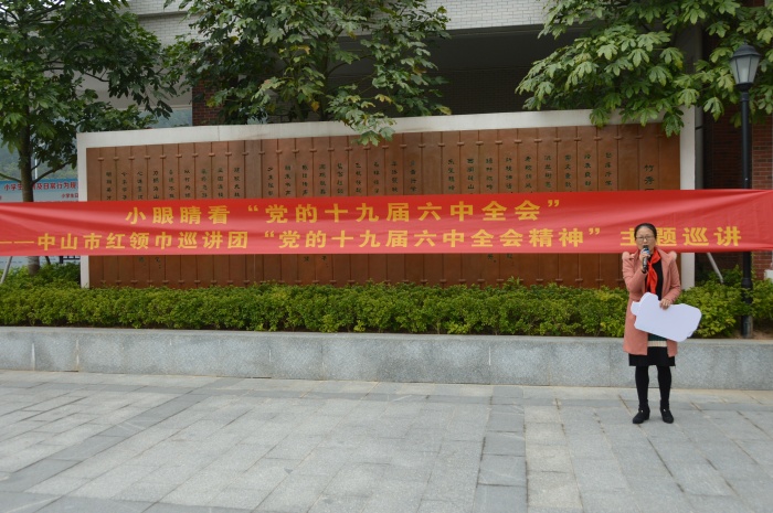 为认真学习宣传党的十九届六中全会精神和习近平新时代中国特色社会主义思想,增进少先队员对党和祖国的热爱,号召少先队员听党话、跟党走,南区竹秀园中心小学开展红领巾巡讲团学习宣传党的十九届六中全会巡讲活动。