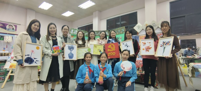 评选活动分为“特色班级建设阐述”和“特色班级建设成果展示”两个环节。“巧手扎锦绣,靛蓝染春秋。”肖宇蓉老师的“霓裳染艺”特色班以“扎染”这一传统工艺为特色展开育人之道。评比现场,肖老师身着扎染旗袍走上讲台,从遇见扎染、走近扎染、邂逅扎染、传承扎染四大部分讲述了六(2)班学生在扎染特色的引领下,班级凝聚力日益增强,师生关系日渐和谐、家校合作更加有效的变化历程。点点滴滴皆是匠心,一布一色尽显情怀。走进扎染,学生不仅感受到传统文化的魅力,还体会到手工创作的乐趣,从而达到“习得真善美,百花绽心头”的育人目标。
